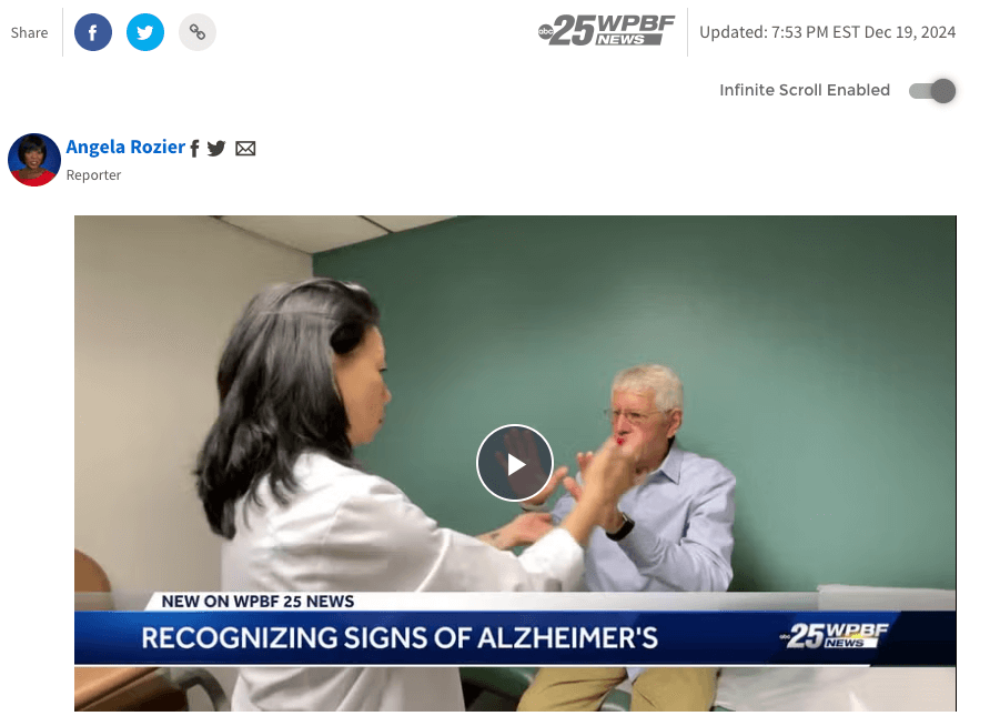 “Of course, the first sign that’s most noticeable is if they’re repetitive. They’re repeating the same story, asking the same question, not remembering the answer,” Pao said. “Mainly language, orientation, and then visual-spatial orientation.”