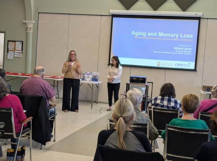 Representatives from Butler Hospital’s Memory and Aging Program and the Global Alzheimer’s Platform recently visited the Swansea Council on Aging to discuss normal memory changes with age and new research in Alzheimer’s prevention. The session also encouraged residents to engage with the Acti-v8 initiative and join a prevention registry.